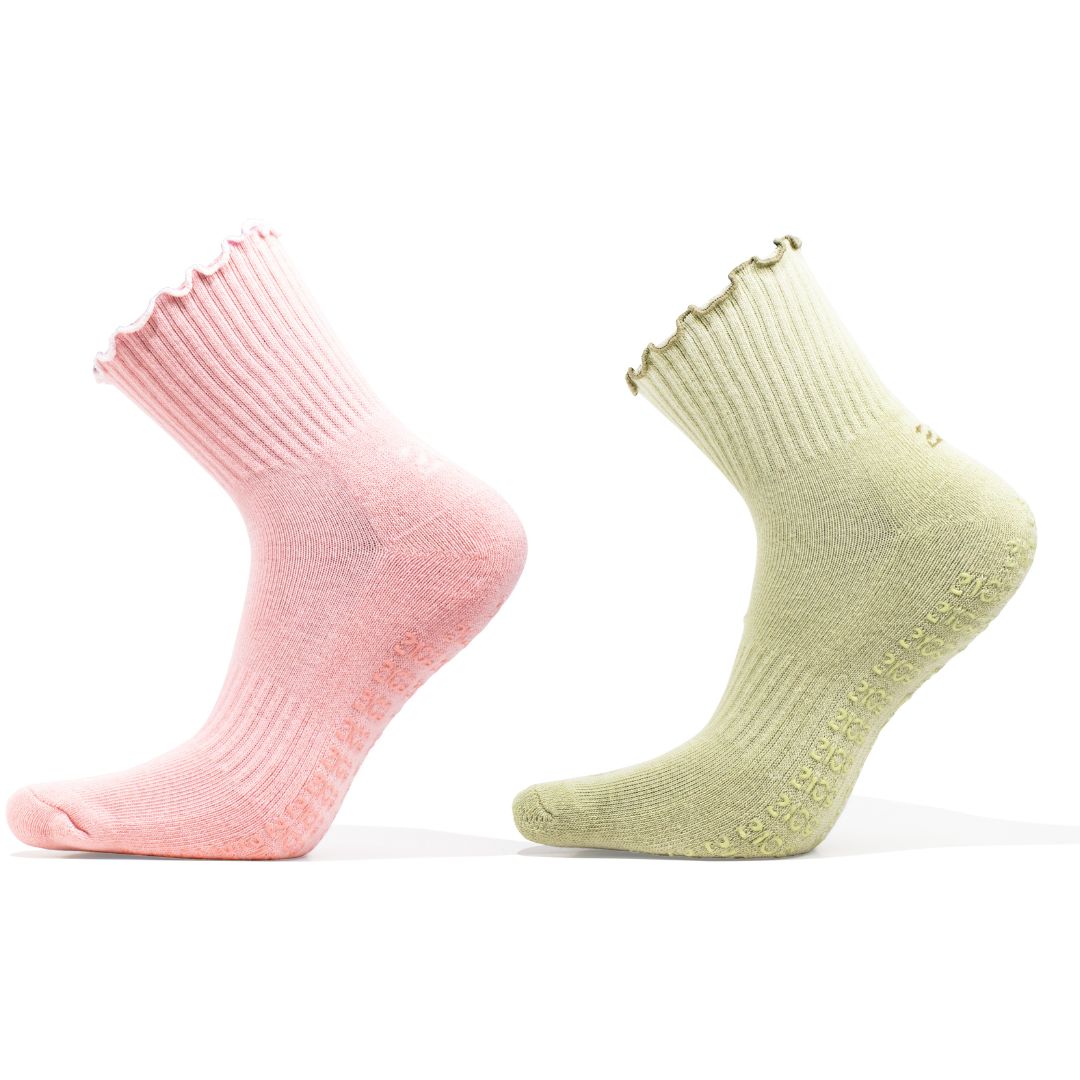 Add the perfect dainty flare to your Pilates fit with these ruffle-accented socks. Available in colours (All socks fit UK size 4-8.):